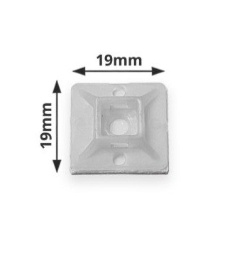 پایه چسب دار بست کمربندی جهت استوار نگاه داشتن دسته های سیم و کابل سبک وزن که از طریق بست کمربندی به یکدیگر خوشه شده اند به هر سطی (دیوار، کف، یا سقف مورد نظر) استفاده می شود. جهت استفاده از پایه چسب دار بست کمربندی، تنها لازم است که روکش چسب پشت آن را جدا کرده، و پایه چسب را به سطح تمیز، صاف، و عاری از روغن چسباند. پس از آن، بست کمربندی از شیار تعبیه شده در پایه چسب رد شده، و سیم ها و کابل های مورد نظر مورد خوشه بندی قرار می گیرند. این پایه چسب ها در دو سایز کوچک و بزرگ می باشند. سایز کوچک جهت عبور بست کمربندی با عرض حداکثر ۴ میلیمتر، و سایز بزرگ آن جهت عبور بست کمربندی تا عرض حداکثر ۵ میلیمترمی باشد. با توجه به مساحت بیشتر سطح چسب دار سایز بزرگ پایه چسب دار بست کمربندی نسبت به سایز کوچک آن، و در نتیجه، نیروی چسبندگی بالاتر، سایز بزرگ آن جهت نگاه داری خوشه های سنگین تر توصیه می گردد. سوراخی جهت عبور پیچ در مرکز پایه چسب ها نیز تعبیه شده تا جهت نگاه داری خوشه های سنگین (کابل های با وزن بالا) که چسب قدرت لازم جهت تحمل وزن آن را ندارد، امکان پیچ کردن پایه چسب به سطح مورد نظر میسر باشد.